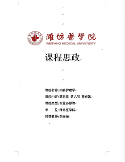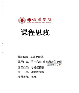 在当前的教学过程中,孟庆慧老师主讲的《护理教育学》绪论章节,在讲述中国护理教育的发展史时,结合2020年在全国、援助湖北抗击新冠肺炎疫情中护理人员做出的巨大贡献,让学生充分感受中国力量与中国自信!张媛媛老师在《妇幼保健学》孕产妇健康教育一节,将我校护理学专业优秀毕业生不惧风险、舍生忘死,从全国驰援湖北、奋战一线的感人事迹引入课堂,引导医学生对“生命·责任·担当”意义的深刻感悟;战同霞老师在《内科护理学》肝硬化病人的护理综合实训中,挖掘护士具有不怕脏、不怕苦、不怕累的优秀品格,引导学生树立时刻以病人为己任,全心全意为人民服务的精神。刘聿秀老师在讲授《护理研究》循证护理内容时,告知学生做科研要实事求是,恪守科研诚信;尹崇高、张兰娥、杨晓、季丽丽、于丽荣等老师在《外科护理学》、《基础护理学》、《内科护理学》、《护理学教育》等课程挖掘人文关怀、职业道德、社会责任、评判性思维等思政元素,强化对学生的教育,取得了良好的效果。