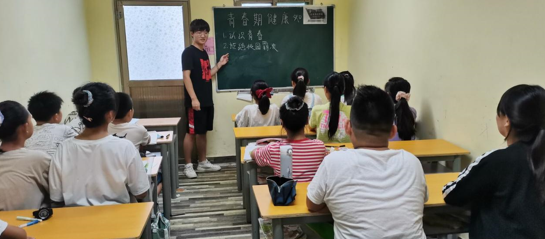 2019级护理二班李立三向当地青少年学生普及青春期在心理与生理方面的相关知识,分为三个部分:正确认识青春期、拒绝校园霸凌、防止性侵。他表示:现在青春期孩子们对于青春期认识不全面,我们要加强相关知识普及,助力他们健康成长。