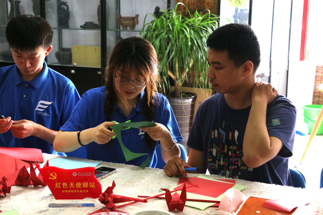 630日,志愿者们来到潍坊市残联服务中心,与残障儿童一起互动。制作纸扇、折红船等手工活动拉近了志愿者与孩子们的距离,志愿者也由此耐心地为孩子们讲解红船承载着党的首创、奋斗、奉献精神;随后,志愿者与孩子们分享蛋糕,共同庆祝党的生日,让孩子们感受到党和国家深受人民的尊敬与爱戴;最后,大家一同歌唱《我和我的祖国》等红歌,表达了对祖国未来发展的美好愿景与跟党走的决心。