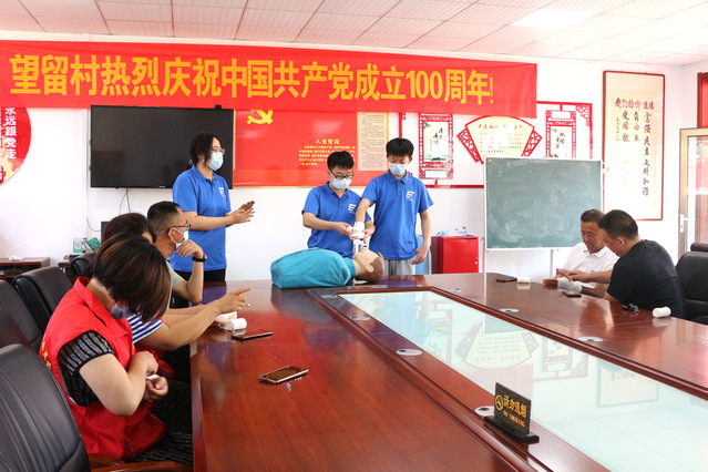 志愿者首先在望留村民委员会向当地村干部与志愿者介绍并详细演示了心肺复苏、海姆立克法、包扎的急救知识,当地村干部与志愿者们热情学习,积极主动进行操作练习,并给予极大肯定。在本次活动中,志愿者们凭借娴熟的操作技术与热情的服务态度,也赢得了村民们的一致赞誉。随后,志愿者们前往兴旺幼儿园与中心幼儿园向小朋友们介绍了海姆立克法,并提醒小朋友们注意防溺水等安全问题,加强自护教育,守护身心健康。