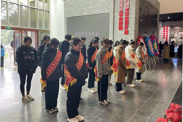 活动中,全体人员在革命烈士纪念碑前唱国歌,默哀致敬,并重温入团誓词。随后,参观了烈士陵园展馆、潍县战役烈士墓、烈士碑亭,缅怀革命先烈,重温英雄事迹,并为烈士献花。通过对烈士家书、敌人杀害烈士的子弹头等革命物品和烈士遗物的参观,深切感悟英烈们对理想的崇高追求、对革命的坚定信念和舍身忘我的革命斗争精神。