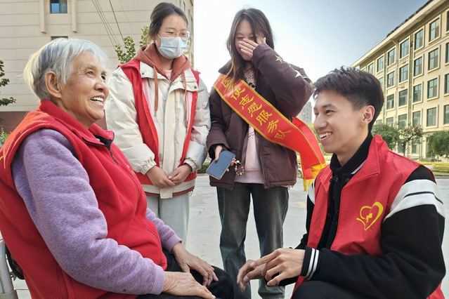 温馨相伴,青春同行。11月7日,护理学专业2022级4班团支部前往潍城区华都颐年园,开展了敬老爱老志愿服务活动。志愿者们积极参与社区的搬运、清洁等日常工作,并向老人们宣讲健康知识,用实际行动诠释了“尊老爱老”的传统美德。