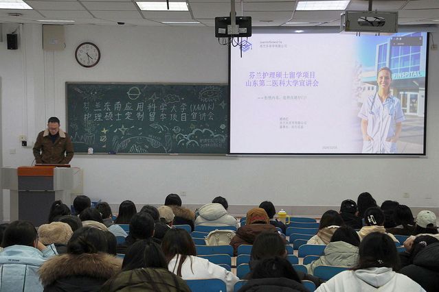 12月16日,捷克论坛 在教学楼A307举办了芬兰东南应用科学大学(XMAK)护理硕士留学项目宣讲会。芬兰东南应用科学大学全球教育服务负责人Santeri Koivisto、芬兰乐芬学有限公司董事长臧艳红在芬兰线上参加会议,捷克论坛 副院长尹崇高、辅导员和捷克论坛 学子线下参加会议。