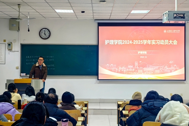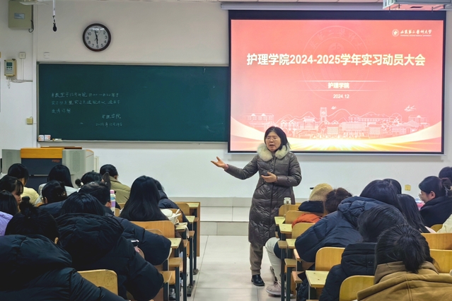 尹崇高强调了实习的重要性,他希望同学们通过实习将理论与实践相结合,拓宽自己的视野,在实习过程中抓住学习机会,提升自己的知识素养和专业技能。张玉珍就实习大纲、实习科室及实习手册问题进行了详细说明。辅导员强调了实习期间的安全和纪律问题,要求学生遵守医院实习规定,在临床实习过程中脚踏实地练就真本领。孟庆慧说明了贯通班分方向实习的必要性,并要求同学要做到以下几点:一是在实习过程中要注意自身安全,谨慎操作;二是要主动学习,多向带教老师请教,勤思多问;三是要学会观察,关心患者的病情和状态;四是要与学院保持联系,寻找正确、合理的问题解决方法。她希望同学们能够树立远大理想,努力为卫生健康事业贡献自己的一份力量。