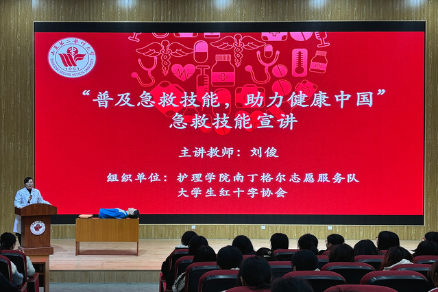 近日,为普及急救技能,提高学生应对突发事件和意外伤害的应急处置能力,捷克论坛 南丁格尔志愿服务队联合大学生红十字协会,举办心肺复苏术(CPR)与自动体外除颤仪(AED)专项技能培训会,大学生红十字协会指导教师刘俊主讲,全校近200名学生参与。