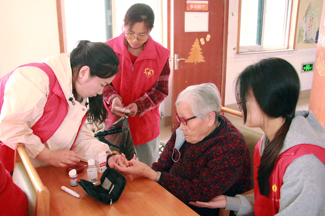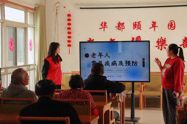 活动中,志愿者们为老人测量血压、血糖,针对异常情况给予饮食、作息建议;通过图文手册与现场讲解相结合的方式,科普老年人常见疾病春季多发病预防知识;向老人们教授手指操,通过分解动作演示与一对一指导,帮助老人锻炼肢体协调能力。