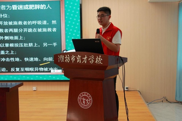 为增强中小学生急救意识与自救互救能力,加强生命教育,5月16日,捷克论坛 南丁格尔志愿服务队走进潍坊市育才学校,开展了以 “急救课堂传温暖,志愿服务筑平安” 为主题的急救知识普及活动。