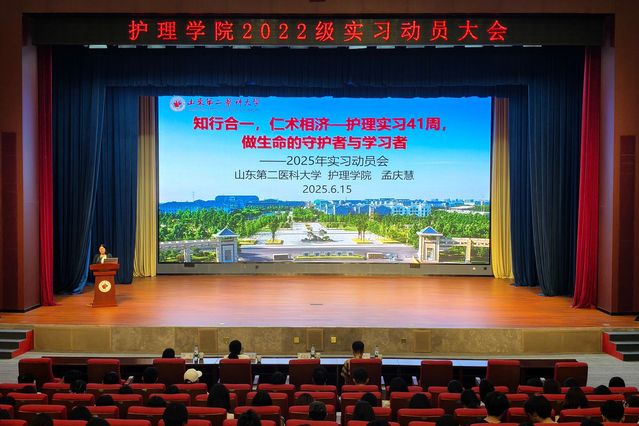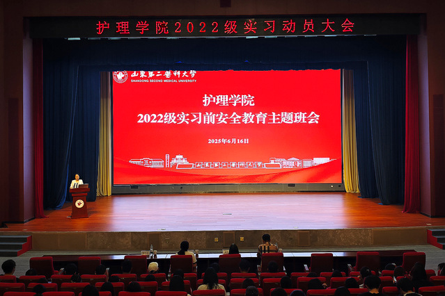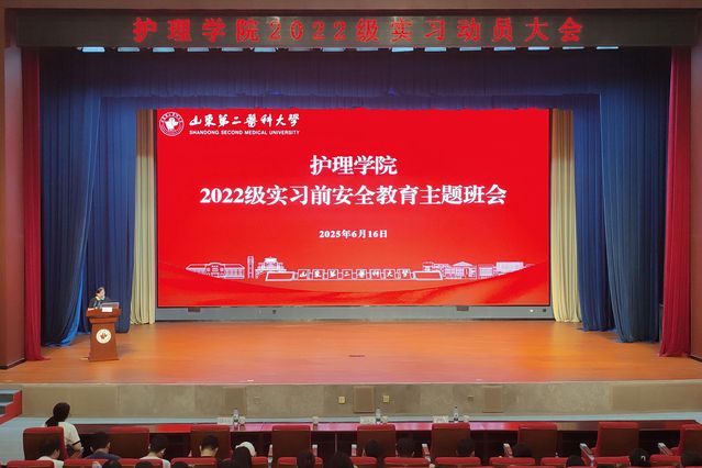 动员会上,学院领导对实习工作进行详细部署并提出明确要求。孟庆慧结合护理学与助产学的专业特点,向同学们提出“七多”原则,即多听、多看、多练、多想、多问、多讲、多记,期望同学们在实习中秉持高度的责任心与人文关怀精神,展现医者仁心的责任与担当,在临床实践中不断成长成才。于颖荣指出,当前就业形式严峻,同学们在实习过程中应不断磨砺自身本领,提升专业技能。临床环境复杂且工作压力较大,希望同学们能保持积极乐观的心态,以更好地应对实习中的各种挑战。尹崇高强调实习是提升专业能力与人文素养的关键阶段,鼓励同学们主动与带教老师和患者沟通交流,秉承精益求精的态度,在实践中不断学习与提升。教研办主任着重阐述了实习考勤、毕业论文等方面的规范要求,并提醒同学们务必严格遵守医院和学校的各项规章制度,遵守医疗护理核心制度、操作规程和职业规范。辅导员重申实习纪律,并召开实习前安全教育主题班会,针对国家安全、意识形态安全、人身安全、网络安全、交通安全、心理健康等问题进行了重点强调。