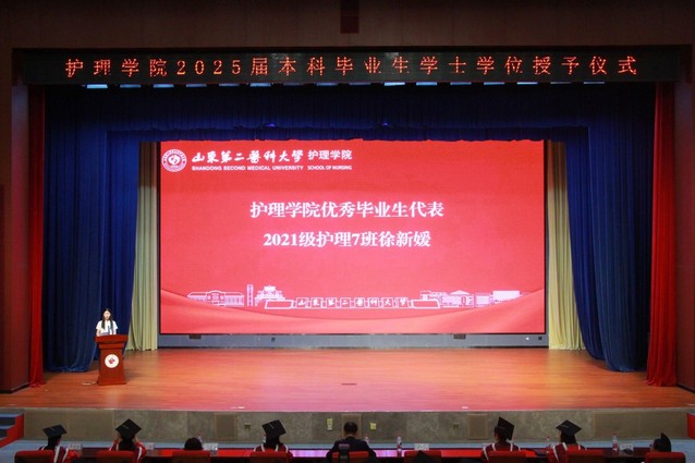 孟庆慧在致辞中代表学院向圆满完成学业的全体毕业生表示最热烈的祝贺。她谆谆嘱托即将步入社会的护理学子,在未来职业生涯中,要持续精进专业技能,秉持仁爱之心,恪守南丁格尔精神,以高度的专业素养和责任担当,守护人民生命健康。教师代表牟灵英教授在发言中向毕业生们表达了深切的期望与诚挚的祝福。她嘱托毕业生们要牢记专业使命,以扎实的专业素养和深厚的人文情怀守护生命健康。优秀毕业生代表徐新媛代表全体毕业生,向母校的悉心培育和老师们的教诲致以衷心的感谢,郑重承诺将不负母校和老师们的培养,恪守职业准则,服务人民,以仁心仁术践行南丁格尔誓言。随后,学院导师代表为全体本科毕业生逐一拨穗正冠并合影留念。最后,尹崇高代表学院再次向毕业生致以诚挚祝贺,并向辛勤耕耘的全体教职员工表示衷心感谢。
