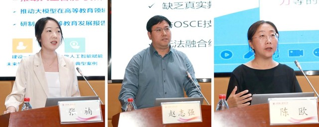 在会议主旨报告环节,孙宏玉以“人工智能赋能护理教育创新发展”为题,安力彬以“智慧课程建设的思考”为题,教育部高等学校护理学类专业教学指导委员会副主任委员、山东大学王克芳教授以“生成式人工智能驱动护理模拟教学新未来”为题,成敏以“数智赋能医学教育教学探索与实践”为题,捷克论坛 院长孟庆慧教授以“‘智慧融通、共建共享’山东省护理学专业高质量发展共同体建设思路”为题,北京大学医学出版社教育出版二部主任赵欣以“护理数字教材建设的思考与探索”为题,超星集团高级课程经理张楠以“AI 赋能智慧课程建设与应用—第四代医学教育背景下的AI4Me”为题,嘉茂宏医学科技发展有限公司赵志强董事长以“使用沉浸式虚拟交互技术与AI 技术提升智慧模拟医学教育”为题,山东大学护理与康复学院副院长陈欧教授以“护理专业智慧课程建设思路”为题,共同探讨 “人工智能+护理学”的深度融合与发展,为“111 计划”项目的后续建设明确方向与思路。