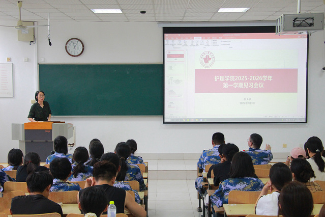 会上,张玉珍围绕本学期见习教学目标与要求、医院科室轮转计划、班车安排及注意事项等方面作了详细说明和系统解读。会议强调,全体见习同学必须严格遵守医院规章制度与临床操作规程,注重言行举止,强化职业防护,保障见习安全,确保高质量完成见习任务。