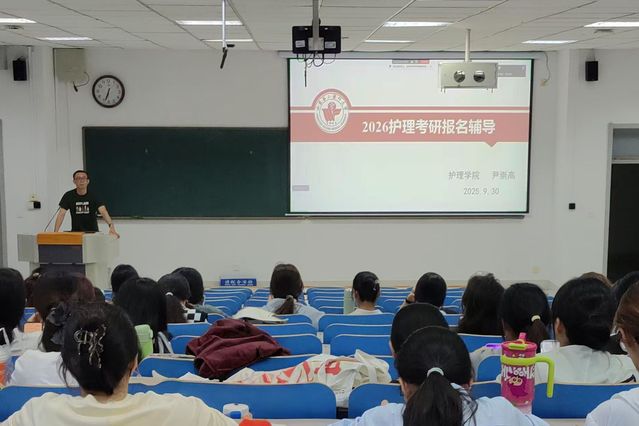 交流会上,尹崇高围绕考研概况、院校招生政策、初试复试要点以及备考建议等核心内容进行了系统讲解。他首先分析了当前护理专业考研的整体形势与发展趋势,帮助同学们把握政策方向;随后结合各高校的招生特点与报考难度,指导学生合理定位目标院校;在关键备考环节,他详细介绍了各阶段的复习重点与应对策略,并提供了切实可行的复习建议。活动还邀请了多位已考研成功的学长学姐进行经验分享,他们结合自身备考经历,从院校选择、时间规划、专业课复习到心态调整等多个角度,分享了实用建议与心得感悟,为在场同学提供了宝贵的参考。