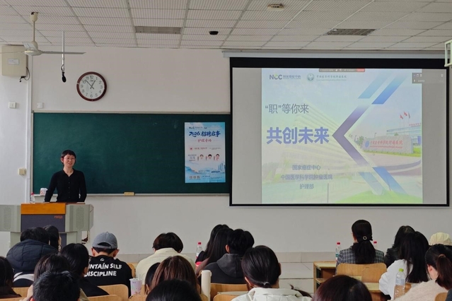 参观结束后,招聘团队面向2026届和2027届毕业生代表开展专场宣讲。招聘团队首先系统介绍了医院的发展规模、院区布局以及高水平人才队伍概况,并针对学生们普遍关心的职业发展前景、薪酬福利体系等进行了详细讲解。在互动答疑环节,学生们聚焦护理岗前培训、职称评定与晋升通道、简历投递注意事项及招聘考核流程等方面踊跃提问,招聘团队一一给予了耐心解答。